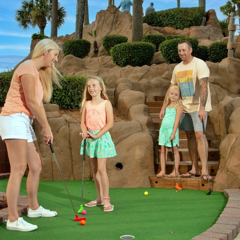 Set sail on a thrilling 36-hole mini golf adventure at Pirate’s Cove Adventure Golf in Ormond Beach, FL! Navigate mysterious caves, winding streams, cascading waterfalls, and lush tropical landscapes while discovering the adventures of infamous pirates like Captain Kidd and Blackbeard. Compete with your crew for the ultimate treasure—sinking that special hole-in-one! Whether your family are daring buccaneers or first-time sailors, adventure and fun await at every turn.