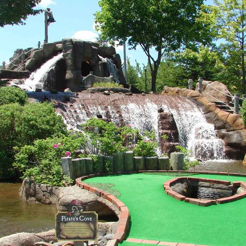 A TRUE LANDMARK IN BAR HARBOR! Enter the world of 18th century pirates--carousing buccaneers, an authentic, full-scale pirate ship, and lavish landscaping. Putt your way through mountain caves, over footbridges and under cascading waterfalls!