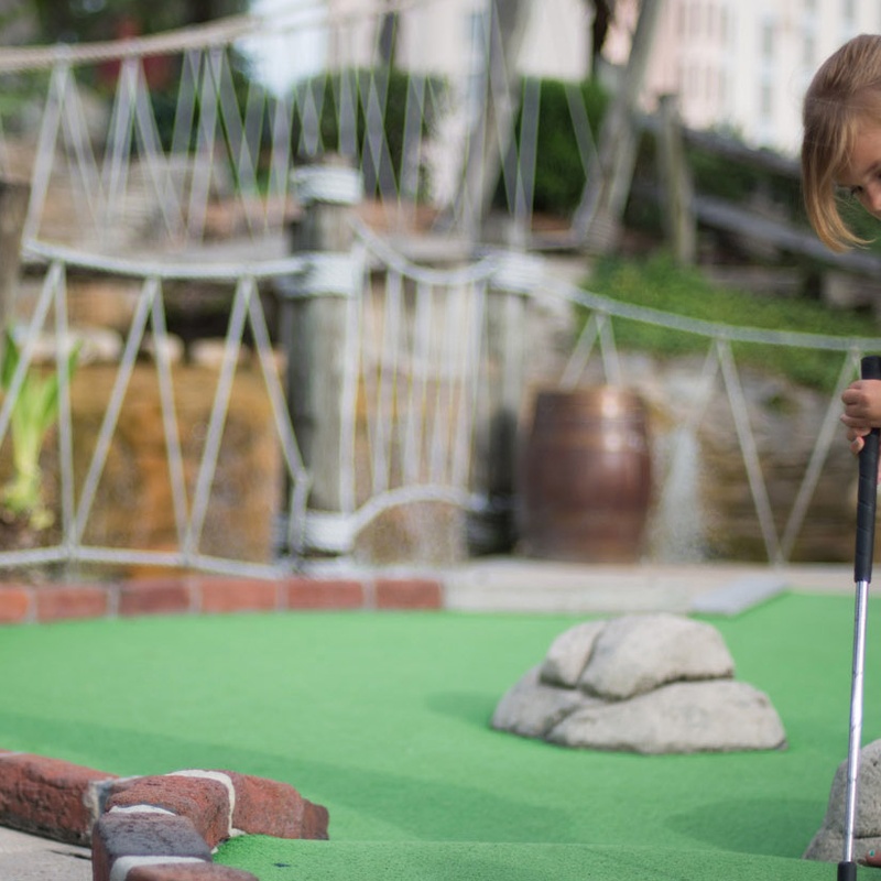 Challenge friends and family to a friendly round of Pirate's Cove Adventure Golf. Discover the fun!