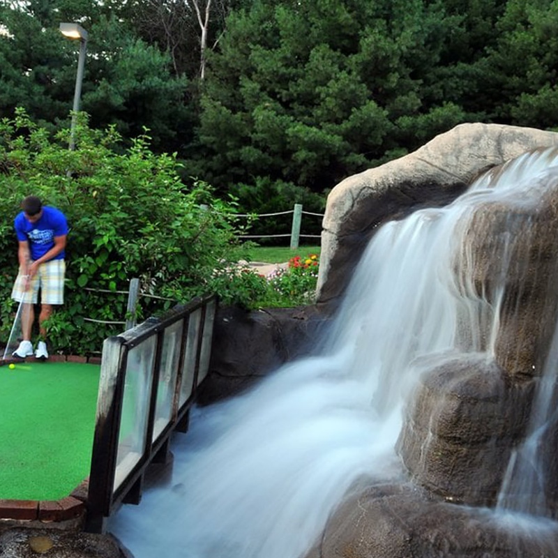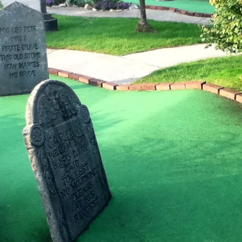 Enter the world of 18th century pirates! Putt your way through mountain caves, over footbridges and under cascading waterfalls. Learn of the adventures and exploits of the roughest and rowdiest pirates that ever lived, amongst a setting of manicured landscaping, meandering streams and meticulously clean grounds.