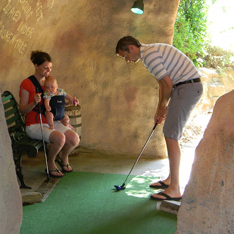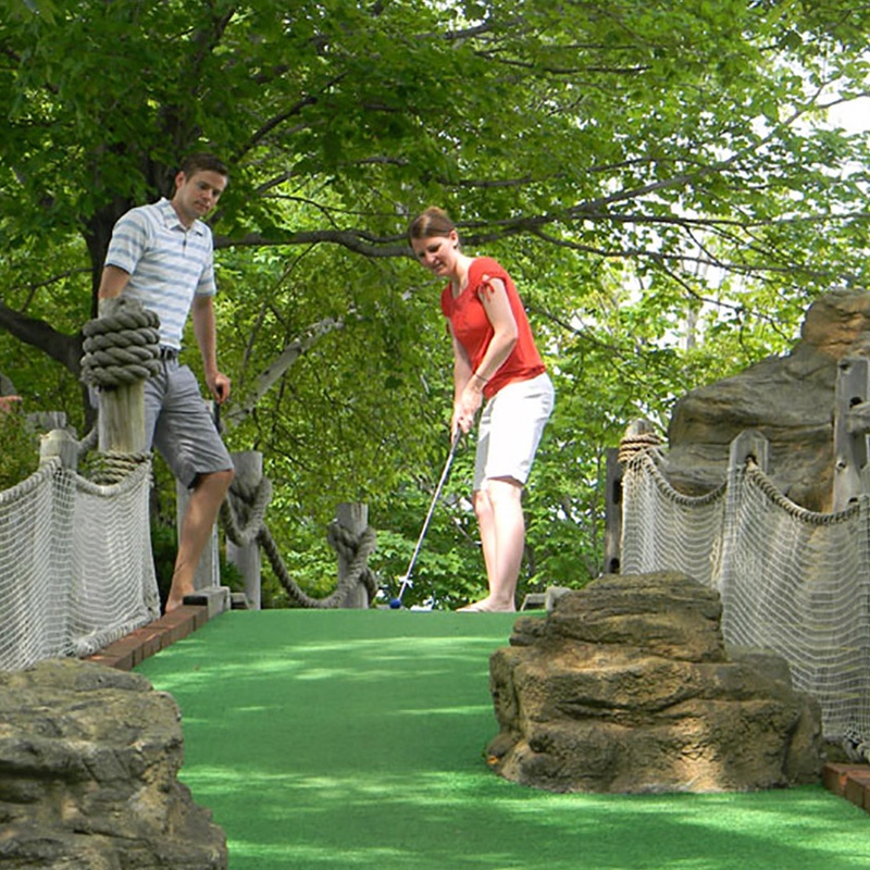 A perfect location for family and group gatherings, our course is designed for maximum fun for kids and adults alike. Challenge friends and family to an enjoyable round of Pirate's Cove Adventure Golf. Discover the fun!