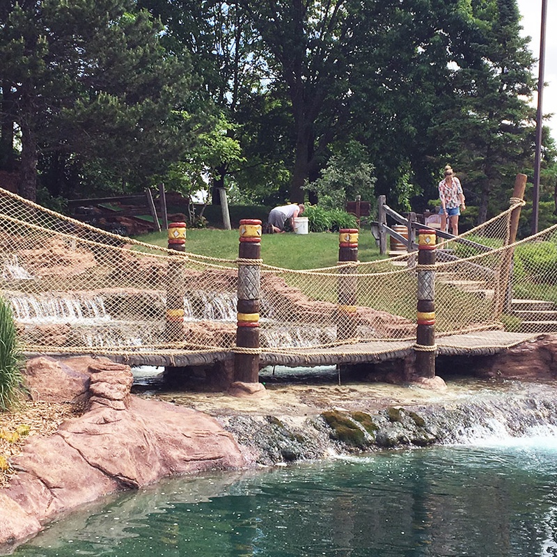 A riot of color and pirate themes transport our visitors from the work-a-day world into one of relaxation and beauty. Manicured landscaping, frolicking pirates, sunken ships and cascading waterfalls all await you. Visit us soon and experience all that Pirate's Cove has to offer.